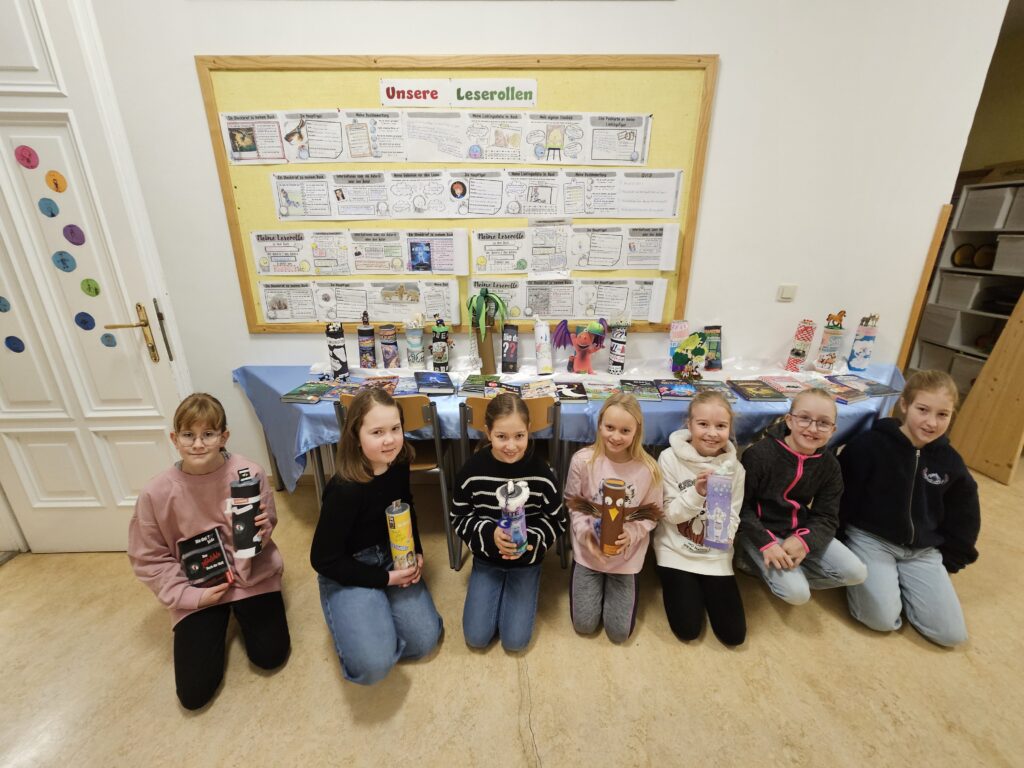 Im Zuge des Deutschunterrichts präsentierten die Schülerinnen und Schüler der 4. Schulstufe ein Buch ihrer Wahl. Um sich intensiver mit dem Inhalt, dem Autor und den eigenen Eindrücken zu beschäftigen erhielten die Lernenden im Vorfeld Impulse, anhand jener sie eine Leserolle gestalteten. Sehen Sie selbst im Anschluss die wunderbaren, einzigartigen Ergebnisse …